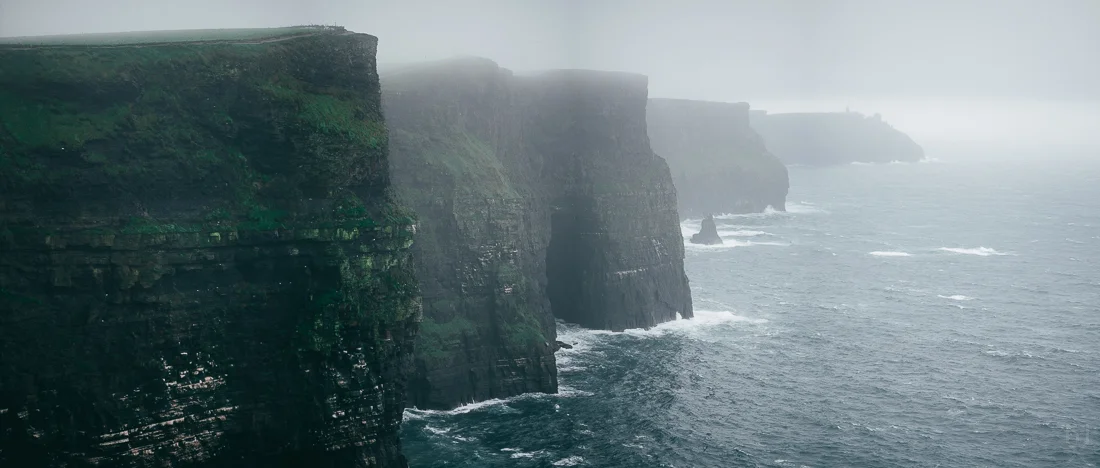 Schon lange bevor wir an den Cliffs of Moher angekommen waren, sahen wir das Meer. Die letzten paar Kilometer zog es uns an der Westküste entlang, durch kleine Städte und Dörfer.